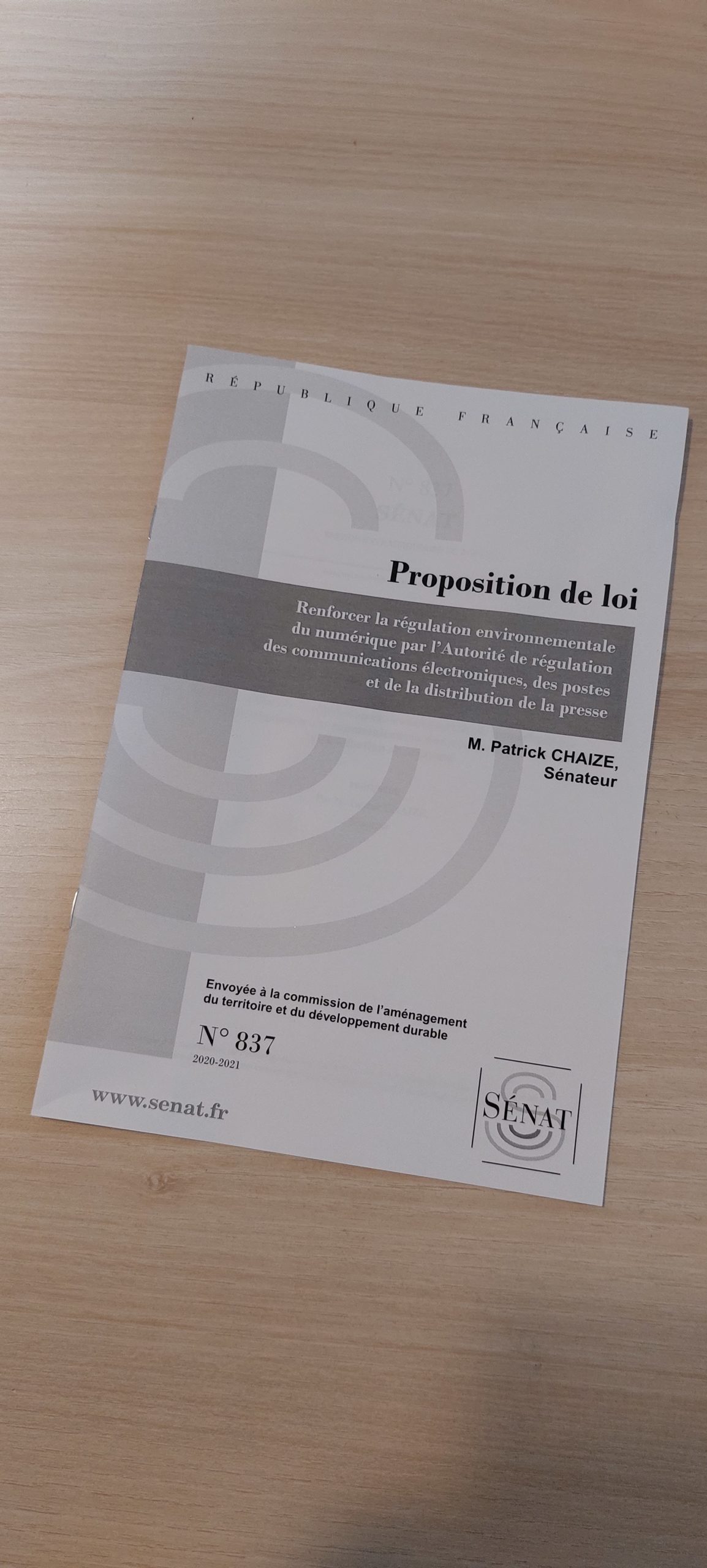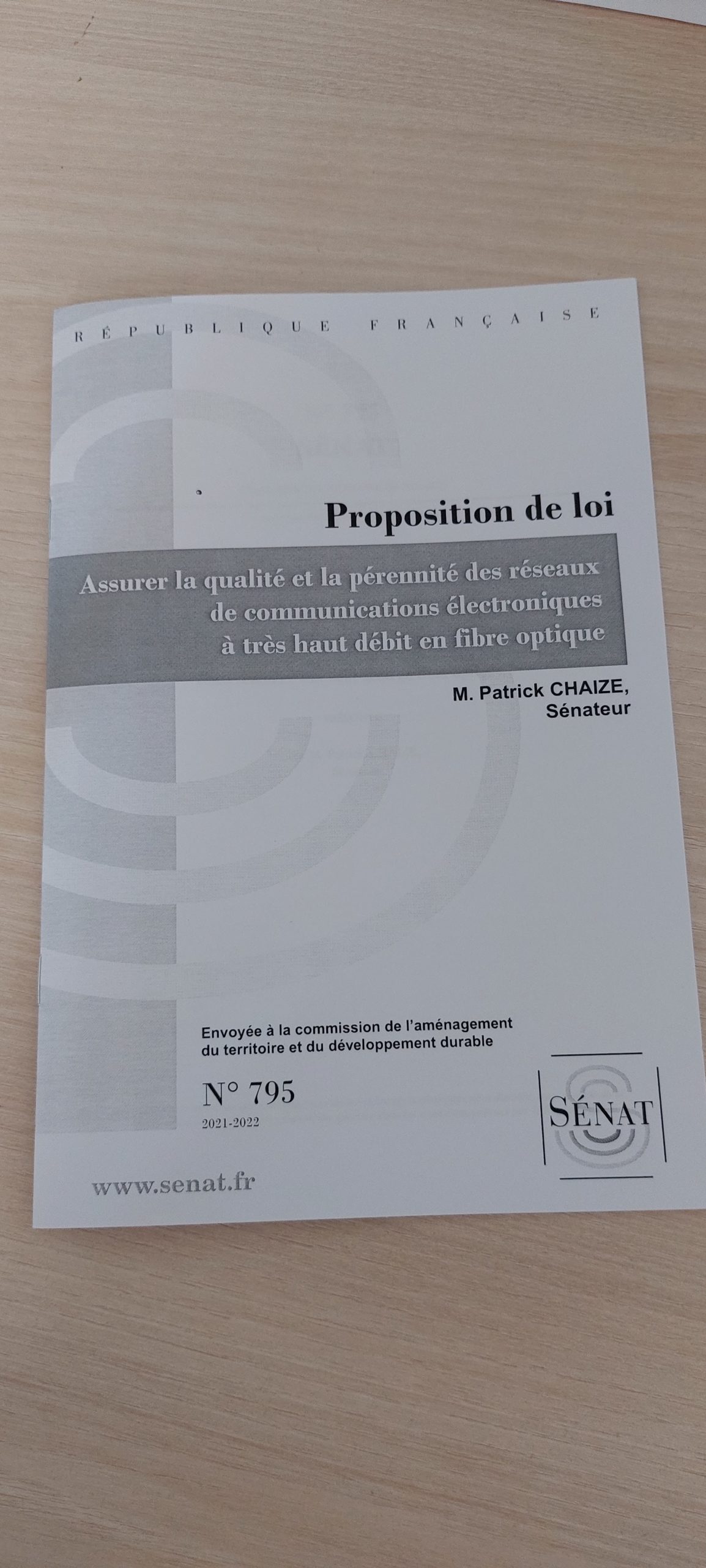 Cette proposition de loi a fait l'objet d'un examen par la Commission de l'Aménagement du Territoire et du Développement Durable du Sénat, le 21 février 2018.