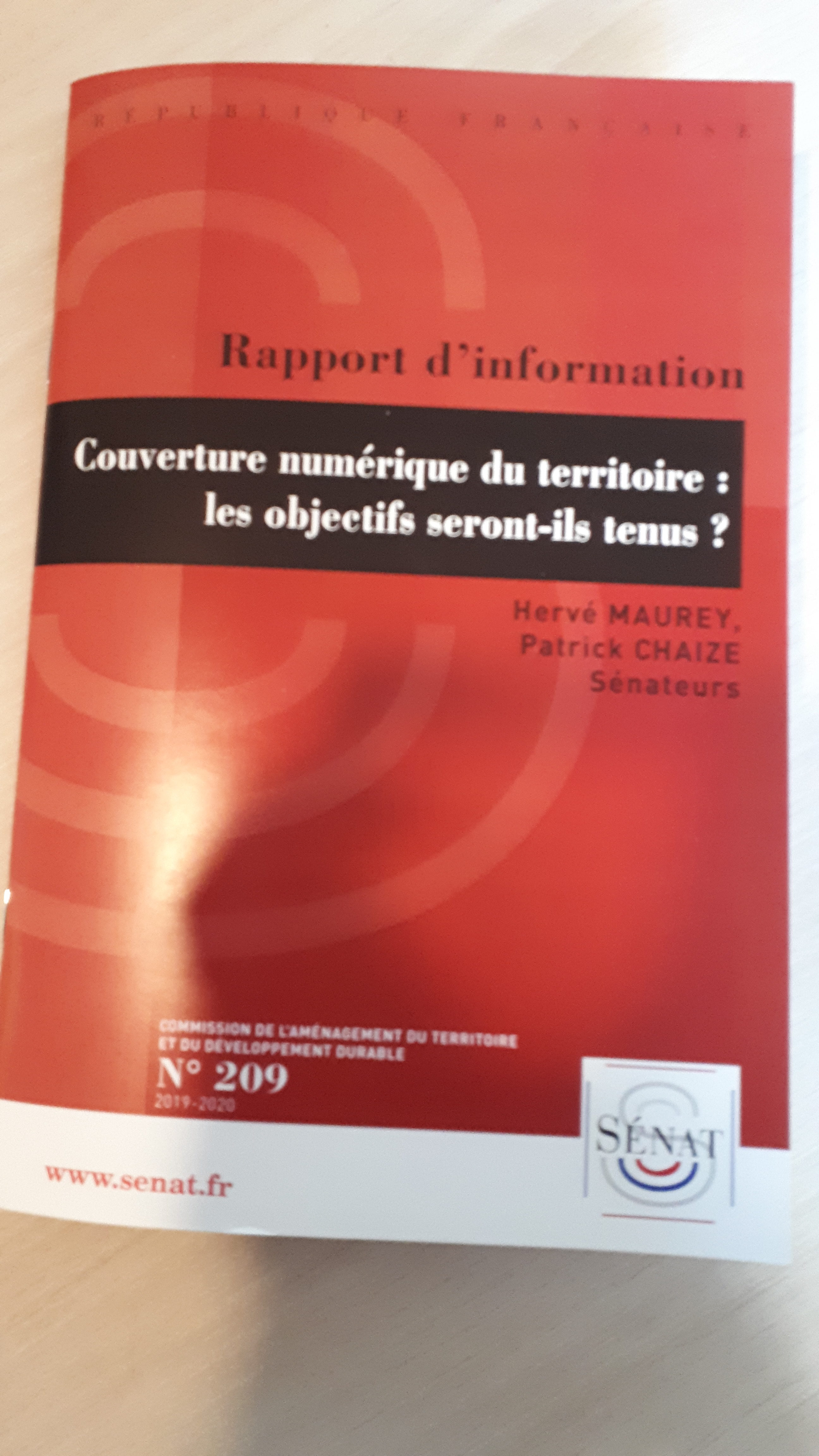 "Couverture numérique du territoire : les objectifs seront-ils tenus ?" réalisé avec mon collègue Hervé MAUREY, au nom de la commission de l'aménagement du territoire et du développement durable, à la suite du colloque organisé le 13 novembre 2019 sur la couverture numérique du territoire.