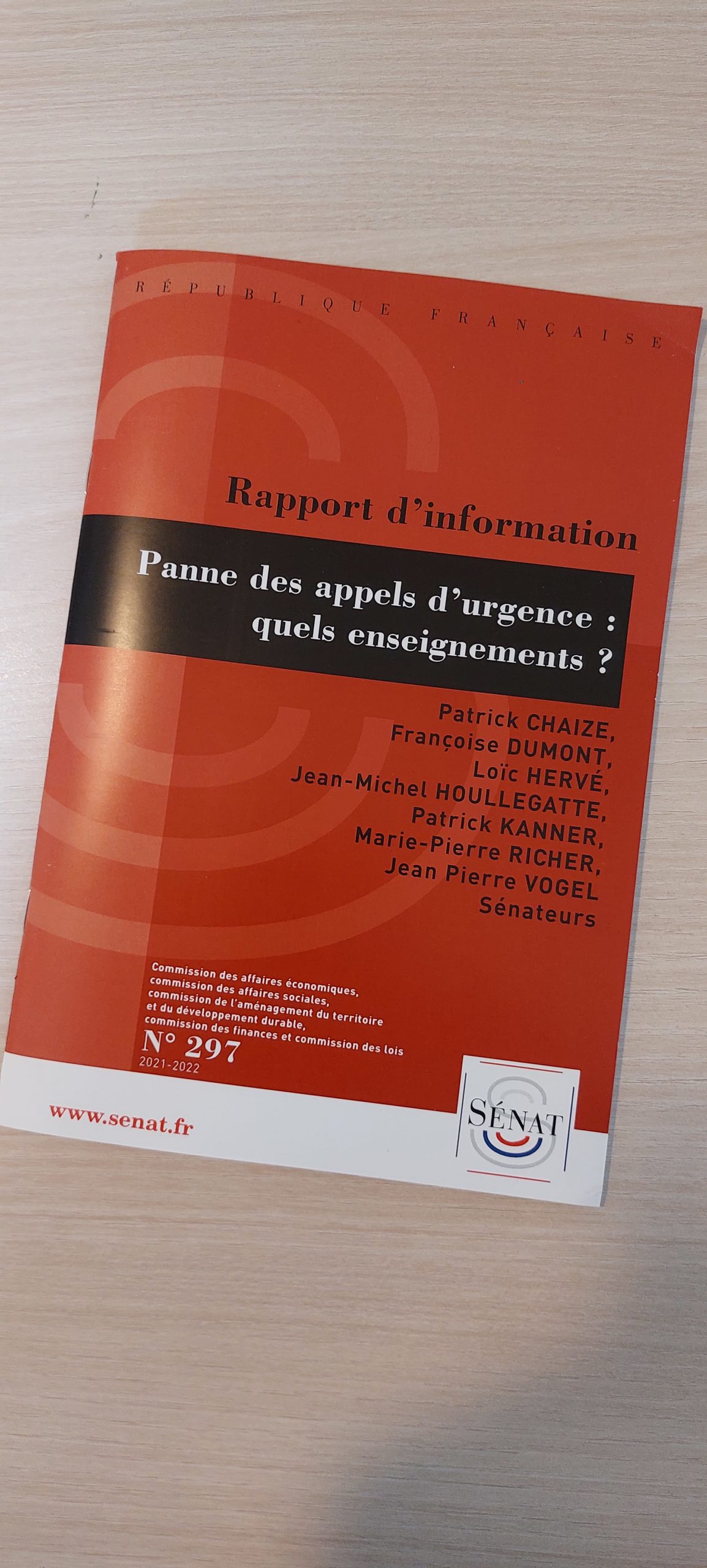Un huitième rapport d'information (n° 297 - décembre 2021) intitulé "Panne des appels d'urgence : quels enseignements ?" réalisé avec mes collègues Françoise DUMONT, Loïc HERVE, Jean-Michel HOULLEGATTE, Patrick KANNER, Marie-Pierre RICHER et Jean-Pierre VOGEL, au nom de la commission des affaires économiques.