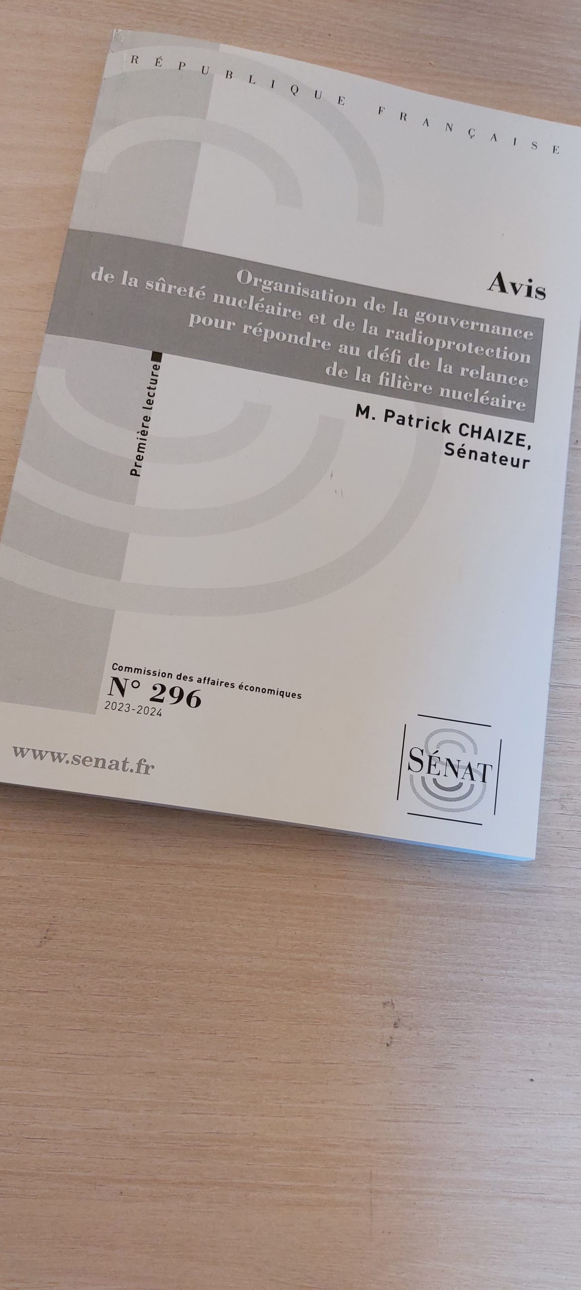 Un quatrième avis (n° 296 - janvier 2024) intitulé "Organisation de la gouvernance de la sûreté nucléaire et de la radioprotection pour répondre au défi de la relance de la filière nucléaire" réalisé au nom de la commission des affaires économiques sur le projet de loi relatif à l'organisation de la gouvernance de la sûreté nucléaire et de la radioprotection pour répondre au défi de la relance de la filière nucléaire et sur le projet de loi organique n°2010-837 du 23 juillet 2010 relative à l'application du cinquième alinéa de l'article 13 de la Constitution.